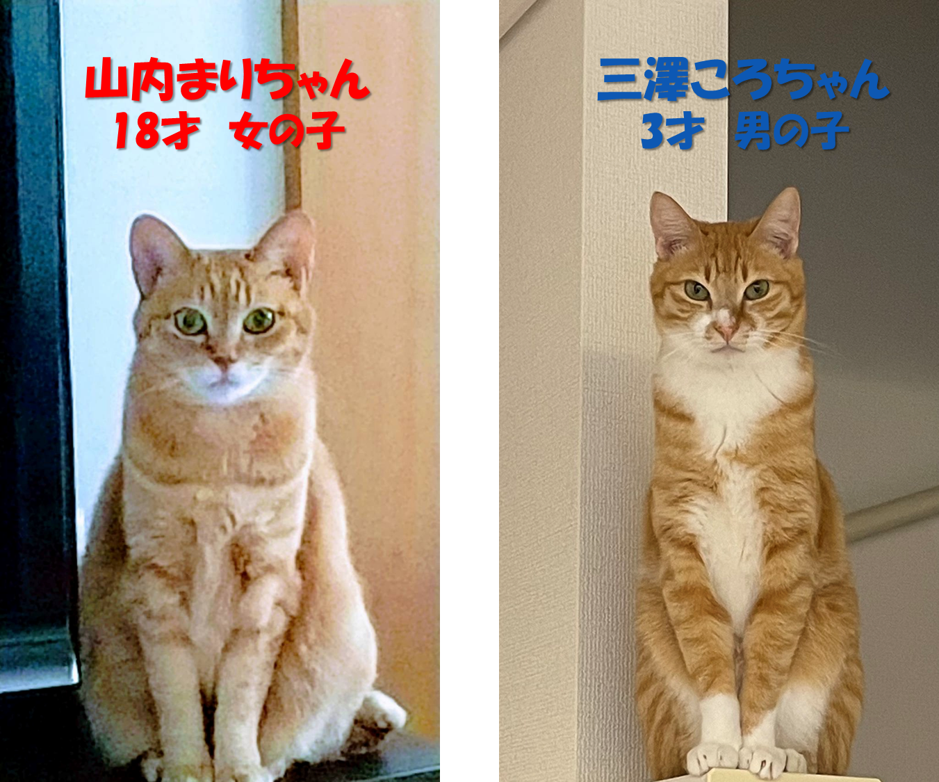 ちなみに、茶トラの子の男女比を、まりちゃん&ころちゃんで表すとこんな感じです↓